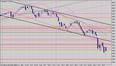 Il est possible ainsi, qu'à partir du support des 2960 points sur lequel la bougie hebdomadaire est venue s'appuyer, tout comme les 2 dernières bougies d'octobre et celle de la semaine dernière, qu'une réaction ait lieu.
