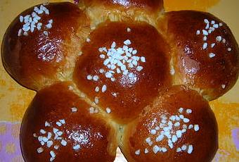 Préchauffez votre four à 180 °, dorez à l'oeuf, parsemez si vous le souhaitez de sucre perles, et enfournez pour 30 minutes et laissez refroidir un peu avant de déguster.