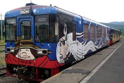 Ikea avait déjà habillé le métro nippon il y a quelques mois (lire chez Kriss), cette fois ce sont les trains japonais qui s'habillent couleur locale, jouant sur la culture du manga, il y en a ainsi pour tous les goûts, d'un bout à l'autre du train, et même à l'intérieur ! De quoi faire paraître les TGV Christian Lacroix bien fades... Source