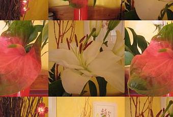 Voici en attendant une mosaïque faite avec des Lys et des Arums qui m'ont été offerts hier soir (soirée raclette avec les collègues de boulot de zhom!)