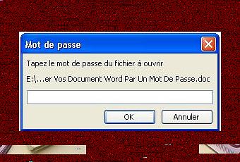 Remarque: vous trouverez dans cette fenêtre deux zones de saisie. Le premier est un «Mot de passe pour la lecteur». C'est-à-dire; quand vous donnerez ce mot de passe à quelqu'un, il peut SEULEMENT lire le document sans qu'il puisse le modifier. Aussi il empêche l'ouverture complète du document. Très utile !! N'est ce pas?