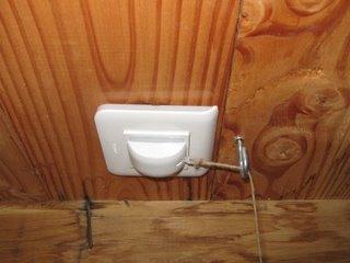 L'électricien croyant qu'ils se plaçaient au plafond (alors que le seul modèle existant est fait pour se placer sur un mur...), nous avons fait un renvoi avec un crochet. C'est pareil mais il faudra surement changer la ficelle plus souvent.