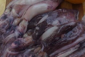 de gros sel. Versez les encornets et la marinade en une fois.