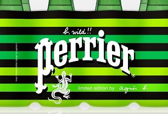 Perrier tout d'abord a été revisité par Agnès B, pour des rayures noires et vertes :