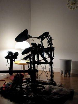 Là on ne se doute pas mais en plus de la batterie électronique il y a eu quelques baffles, amplis, guitares électriques, basses, saxo, harmonica, percussions. Bref tout ce qu'il fallait pour que des musiciens de talent s'offrent une nuit à boeufer. Imaginez les décibels! Ah j'oubliais! des chanteuses et pas en mode Carla Bruni..mais plutôt en mode AC/DC :)