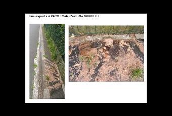 Et voilà que ça recommence, le ouikend dernier, à dégouliner. Des trucs pas propres sous les roues de Ma'me Robert et de M'sieur Firmin quand i'sortent de leur garage : du jus de purin sorti des toilettes qui coule qui coule dans le caniveau une fois encore pour se jeter direc' dans le ruisseau.