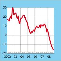 Les prix de l’immobilier au Royaume-Uni affichent une chute de 16% sur un an en novembre, d’après les chiffres de la banque Halifax. Ce qui représente la plus forte baisse depuis que cette statistique est calculée, en 1983. Certes, il y a des signes d’amélioration. Le ralentissement observé en novembre (-2,6%) est moins important que les mois précédents, et le nombre de prêts immobiliers consentis par les banques s’est stabilisé depuis quatre mois. Mais l’environnement n’est toujours pas favorable aux ménages. Les taux d’intérêts des crédits immobiliers restent élevés et le ralentissement de l’emploi outre-Manche pourrait diminuer leurs revenus.