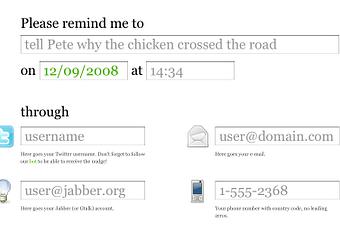 Une fois n'est pas coutume je partage un site extrêmement useful comme on dit et simple. Ca fait des mois que je cherche un moyen de me rappeler ce que je dois faire, au départ le plus simple aurait été une secrétaire, mais 1/ ma femme n'est pas pour, et 2/ à TNTV c'est des radins, j'ai donc tout essayer, les todo list, i foggot the milk ou je sais plus quoi, le google calendar, les penses bêtes bref rien de tout ça n'était très fiable et bien sur j'oubliais donc à chaque fois d'appeler maman, d'aller chercher le pain etc...Grâce dorénavant à Remindr, plus d'oubli, il suffit de taper ce dont on doit se souvenir et via mail, via twitter, Gmail ou/et par sms (j'ai testé ça marche) le site te préviens...nickel