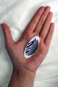 Délicatement, j'ai enlevé le patch. Là, on peut voir un début de résultat.Ok, l'imprimé zèbre est totalement too much, mais techniquement, à cette étape-là, c'est plutôt bien fait.