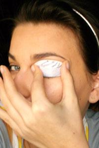 Une fois le patch posé, il faut passer le doigt dessus pour lisser et bien répartir le fard.