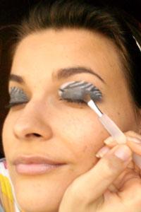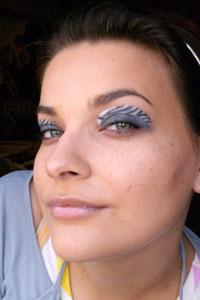 Après une couche de mascara, voici le résultat.Tentons de passer outre l'imprimé zèbre... Je trouve le résultat plutôt moyen sur un plan technique. De près, le résultat n'est pas très net. J'ai eu le malheur d'ouvrir un peu trop les yeux et l'imprimé zèbre, qui ne devrait être qu'en haut, s'est retrouvé aussi sur la paupière mobile. Sinon, c'est très facile à mettre. Le résultat est tout de même au-delà de mes espérances. (J'avais un a priori très négatif)