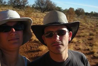 Voici encore un des meilleurs moments de ce voyage : le coucher de soleil sur Uluru. Uluru est le nom aborigène du rocher anciennement appelé par les Australiens : "Ayers Rock".Ce caillou, posé en plein milieu du désert rouge, est impressionnant par sa palette de couleurs qu'il offre tout au long d'une journée. Orange, Rouge, Marron le soir, Noir quand vient la pluie, et mêmen avec des touches de Violet au petit matin...