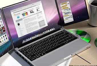 Il y a des Mockup qui sont tout simplement incroyables. Des trucs où on se dit que ceux qui décident doivent regarder et étudier ça pour en faire une réalité. Le triBook, puisque tel est son nom, une fois tout replié, c’est à peine plus gros qu’un Netbook, mais quand on l’ouvre et qu’on déplie les écrans, c’est 21 pouces de pur bonheur. Le tout avec une puissance de feu comparable à celle d’un Macbook actuel. Et un trackpad large comme l’égo de BHL.