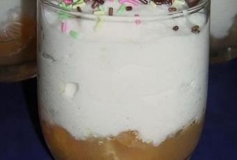 Les déposer dans 4 coupes et verser la mousse dessus.