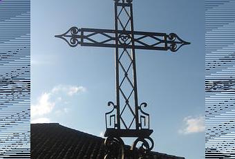 Avant de visiter en septembre, l'église de Faget-Abbatial, j'ai trouvé sur une placette, en face de l'entrée de l'édifice, une croix en fer forgée toute mignonne. Simplicité et beauté en font son charme !