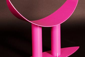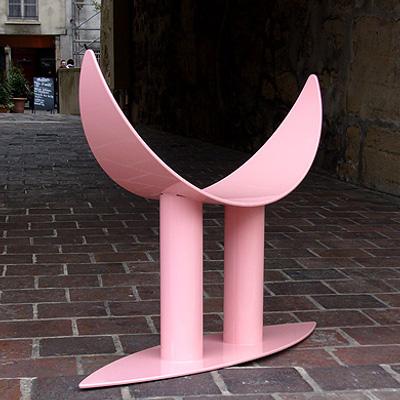 Tabouret design Huba Tetrel. Magnifique tabouret en acier laqué rose, en forme de cornes.