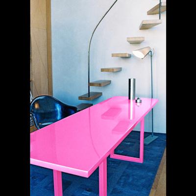 Une table laquée rose, du même designer que le tabouret présenté ci-dessus. L’alliance du laqué et du rose apporte une brillance et une importance toute particulière à une table comme celle-ci disposée au milieu d’un salon. ( Pour les plus réticents, elle est également disponibles dans d’autres coloris.)