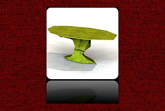 Le pied central de cette table semble tordu comme le tronc d’un arbre centenaire ou nervuré et proportionné comme un bonzaï (centenaire certainement lui-aussi…). De ce tronc sortant d’un pied évasé à sa base, sorte de motte de racines cherchant à s’ancrer dans le sol, sortent des branches venant maintenir un plateau décagonal. Le feuillage plat de cet arbre.