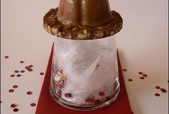 4. Décorer le sommet des mousseux avec une pointe de chocolat fondu et une demi-noisette.
