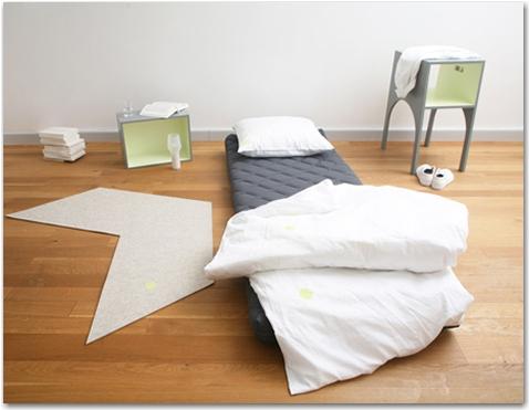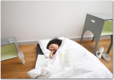 Tout est prévu (drap, matelas, lampe de chevet), et chaque élément du meuble sert dans la nouvelle “chambre à coucher”