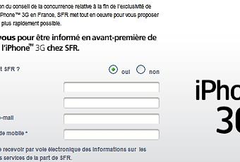 SFR réagit vite. Ils sont en effervescence depuis l’annonce du conseil de la concurrence. Le Blog iPhone a, ce matin, surpris la mise en ligne d’un site chez SFR qui a vite été retiré. Ils ont quand même publié un autre site pour que les clients SFR intéressés puisse s’inscrire : soyezpret.sfr.fr.