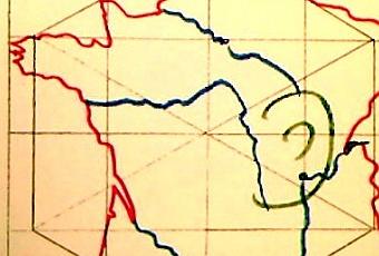 Premier travail : tracer au crayon un carré qui devait tenir toute la page, puis le diviser soigneusement en quatre fois quatre = seize petits carrés tous égaux. Une nouvelle opération, plus compliquée cette fois – et tous les sages garnements de tirer la langue avec application – consistait à pointer la mine du crayon sur le centre de la figure géométrique obtenue (centre probablement situé "pour de vrai" près de Neuvy-Saint-Sépulchre [1] au cœur du Berry ), puis à reporter la longueur de deux petits carrés dans quatre directions diagonales opposées, à relier ensuite les six sommets de la figure afin d’obtenir un hexagone. Restait enfin à reporter les quinze et vingt contours terraqués de notre pays, lesquels, ô miracle ! venaient s’inscrire tant bien que mal dans le polygone aux six côtés. Heureusement, la Sœur nous en dessinait le modèle, traits vifs à la craie bleue, blanche et rouge sur tableau noir. Avec un peu d’imagination on pouvait alors voir surgir, sous l’ouvrage de nos doigts malhabiles, la Tête hexagonale de la France. Amusements sur les bancs : « Hé ! t’as vu ce pif ! » etc. Vite calmés par la Sœur lorraine qui avait conscience de nous avoir "révélé" là un savoir hautement sacré…