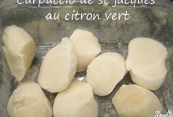 Débarrassez les de leur coquille, séparez les différents éléments et ne gardez pour cette re7 que les belles noix que vous rincez rapidement en les passant sous un filet d'eau. Les égoutter sur du papier absorbant avt de les mettre au congélateur pour qu'elles durcissent et faciliter ainsi leur découpe pour faire le fameux CARPACCIO