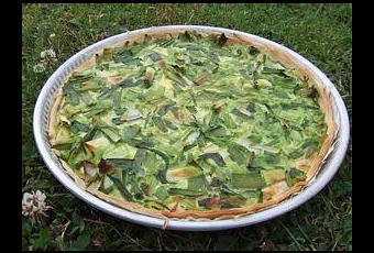 Déroulez la pâte dans une tourtière et déposez les tranches de fromage. Egouttez les poireaux, répartissez-les uniformément sur le fond de tarte, recouvrez avec la préapartion liquide.