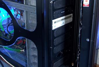 Alors certe, il n’y avait que le boitier, mais le bébé fait 20 kilos à vide. 30 tout pleins faits (mobo cpu, alim… 1/2 litre de flotte). Et oui car j’ai fait passer mon cher Burning Mechine au watercoling. Et j’aime autant vous dire qu’il apprécie, avec une chute de 20°c dans les températures pour le CPU par rapport au ventirad Noctua NH-U12F. Autant vous dire que je suis en train de pousser encore plus haut mon overclock (3,5 Ghz stable à l’heure où je vous parle, mais j’ai bon espoir de taper les 3,7 voire 3,8)