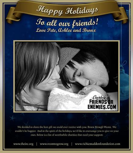 Voici Bronx Mowgli Wentz qui fait ses débuts sur la toile… Je me demande si Ashlee et Pete espèrent que la publication de cette photo amènera certains magazines à se manifester pour la publication d’une série complète!
