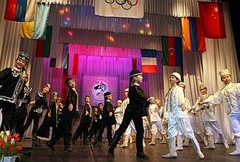 Photo ci-contre: La cérémonie d'ouverture du Grand Prix Fide d'échecs d'Elista, très festive et haute en couleurs.