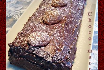 Dans la recette originale, il n’y a pas de glaçage mais comme je souhaitais le présenter comme une buche j’ai réalisé une ganache avec 150g de chocolat et 15cl de crème. Hachez grossièrement le chocolat et mettez le dans un saladier. Faire chauffer la crème et versez la bouillante sur le chocolat. Mélangez bien et réservez 10 minutes au frais. Mélangez de nouveau la préparation et recouvrez le pavé avec une spatule ou un couteau a bout rond. Avant de servir saupoudrez de sucre glace.