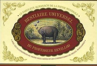 "Bestiaire Universel du professeur Revillod" Miguel Murugarren (textes), Javier Sáez Castán (illustrations). Editions Autrement, 2008. Traduit de l'espagnol (Mexique) par Françoise de Guibert.Curieux objet que ce « Bestiaire Universel. »Son auteur, le célèbre professeur Revillod, scientifique de renommée mondiale, digne émule de Pline l'ancien, de Linné, Buffon et Cuvier, se propose, avec cet ouvrage, de recenser et décrire pas moins de 4096 espèces animales vivantes. Une telle liste pourrait sembler au premier abord assez rédhibitoire mais notre éminent zoologiste a formé le projet d'offrir au lecteur le moyen de « s'instruire en se distrayant et vice-versa. »