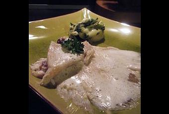 Prélever l'émulsion vanillée à la cuillère et la verser sur la raie.