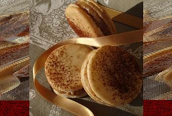 Voici les petits derniers nés pour les fêtes de fin d'année...des macarons légèrement chocolatés et ganache au pralin!