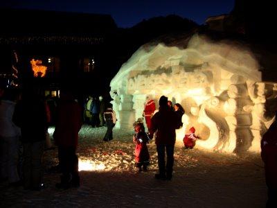 Les jours précédant Noël, la station avait fait faire un grand chalet de neige pour abriter le père Noël qui pouvait ainsi donner des papillotes aux enfants ! Comme c'est mignon...
