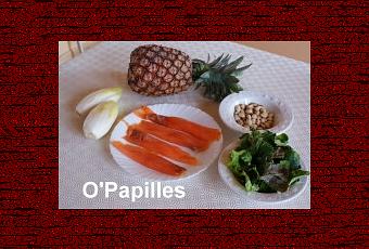Il faut prévoir 1 ananas, 2 endives, de la salade mélangée, 4 tranches de saumon fumé, des pistaches.