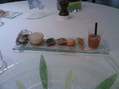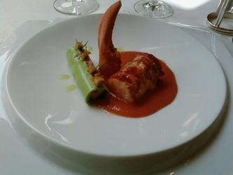 - Entrée : homard bleu, canneloni de guacamole et gaspacho de tomates du Bristol, foie gras grillé à l’Agapé.