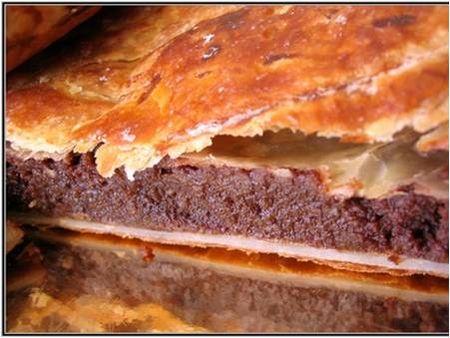 Travaillez le beurre mou avec le sucre jusqu'à ce que le mélange soit homogène et “mousseux”. Ajoutez les amandes en poudre, le chocolat fondu, les 2 œufs, la cannelle et quelques goutemp/msohtmlclip1/01/cl sulfurisé. Garnissez le centre avec la pr&232;me pâte feuilletée. Soudez les deux parties en pressant tout le tour avec vos doigts, en l'humectant un peu si nécessaire et en le pressant pour fermer hermétiquement. Faisrc="file://C:/DOCUME%7E1/Laurence/LOCALS%7E1/Temp/msohtmlclip1/01/clip_image001.gif" height="20" /> Avec un pinceau, dorez la surface de la galette au jaune d'œuf. Piquez très légèrement et discrètement la pâte à quelques endroits pour éviter qu'elle ne gonfle trop.