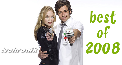 Tadaaaa ! Oui je sais, je l’avais déjà fait l’an dernier, hum ! Enfin bon, les résultats des TV Chronik Best of 2008 sont tombés ! Et je sais que vous mourrez d’envie de connaître les résultats… ou pas du tout. Dans ce cas, vous pouvez encore quitter le site en cliquant sur une croix de votre navigateur, je ne vous retiens pas. Mais si vous avez quand même envie de savoir qui a remporté le prix du meilleur drama ou de la meilleure actrice, je vous emprunte deux ou trois minutes de votre temps.
