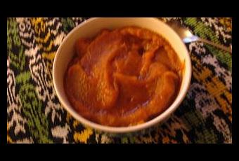 Mettre les patates douces dans une casserole et recouvrir d’eau. Porter à ébullition et ajoutez alors le sucre, la cannelle et l’ananas. Laisser cuire encore une 20 de minutes, jusqu'à ce que les patates douces soient très fondantes. Retirez les fruits et réservez le sirop. Mixez les fruits jusqu’à l’obtention d’une purée, ajoutez le sirop et mixez a nouveau.