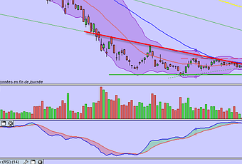 Arcelor Mittal vient de s’extirper de sa figure de consolidation après une vive baisse ce qui devrait permettre au titre de retracer une bonne partie de sa baisse. on commencera par un objectif sur 28€. Demeure une petite résistance sur les 20 euros avant de pouvoir laisser les cours d’Arcelor décoller vers un test du trend baissier long terme autour des 28€ donc pour le moment.