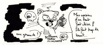 Ils font chié mes voisins d'en haut. Ils font du bruit à n'en plus finir à taper comme des cons en "rythme"...Oui, vous lisez bien, en rythme... A mon avis c'est dû à la wii... Putain de console de merde. Hier soir ils ont taper jusqu'à minuit et vendredi soir j'en avais tellement marre qu'à 21 heures j'ai passé l'aspirateur pour ne plus entendre leur bordel (du coup j'ai avancé dans mon ménage lol).Fuck off les neighboors d'en haut !