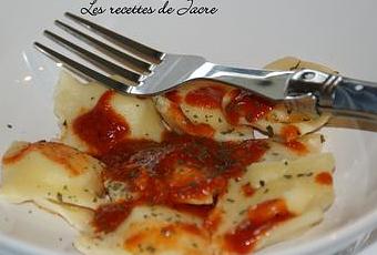 Pour mes premières ravioles maison, je suis assez contente de moi, la forme des pâtes y était et le goût aussi...