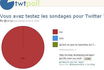 Envie de créer un sondage vite fait ? pas de problème avec Twtpoll vous arranger cela en quelques secondes … Twtpoll créer des sondages à la volée et vous permet grâce à un lien de l’envoyer directement sur Twitter ou Facebook, pour le reste de la planète deux lien sont délivrés , le sondage + le lien de résultats.