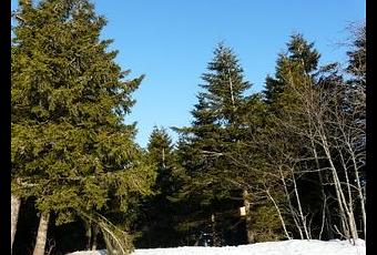 Il y a de la neige à partir de 800m et environ 50 à 70 cm vers 1100m, la neige est dure comme du béton et, en forêt, comme le vent a soufflé assez fort ces derniers jours, il y a pleins de petites branches cassées, ça rend la neige un peu "sale". Un peu de neige fraîche ferait du bien pour reblanchir ce paysage !