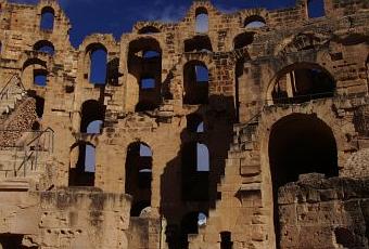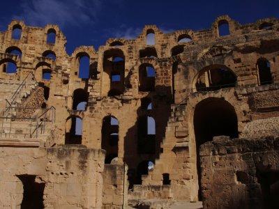 Et puis, alors qu’on semble être loin de toutes cités, on aperçoit l’amphithéâtre d’El Jem tronant au milieu de la ville du même nom avec ses 18 000 habitants. El Jem apparaît comme la capitale de l’huile au milieu de tous ses oliviers. Elle a d’ailleurs été développée grâce au commerce de l’huile d’olive et de l’agriculture dés le IIème siècle. On entre dans cet amphithéâtre immense et commençons à déambuler dans ses coulisses, ses escaliers et ses gradins, puis son arène où les jeux du cirque et les exécutions ont amusé prés de 40 000 spectateurs à chaque fois…