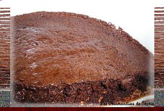 Dans un élan de compassion, ou disons, pour me faire plaisir, mon chéri m'a concocté ce fondant pendant que j'étais au sport : -) ! Pour lui, la cuisson n'était pas réussie : peut être aurait-il du rester quelques minutes de plus au four (impossible de faire des belles parts), mais moi ça me convient parfaitement. J'avais l'impression de manger une mousse au chocolat : ce fondant est intense en chocolat mais reste très aérien !