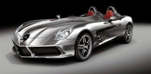 La nouvelle Mercedes SLR Stirling Moss arbore un design futuriste avec ses pare-chocs aiguisés, ses sorties d’échappement carrées et sans pare-brise et pour couronner le tour une vitesse maximale de 350Km/h et le 0 à 100 Km/h en seulement 3.8 s.