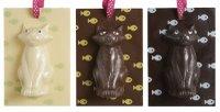 -Au loin une comptine ‘‘trois p’ti chats chats chats’’, les chats malicieux se disputent les poissons, tableaux chats, chocolats noir, lait ou blanc - 100gr - 12,80€, les cloches sonnent pâques et les plus jeunes s’affairent à la recherche du présent délicieusement chocolaté.